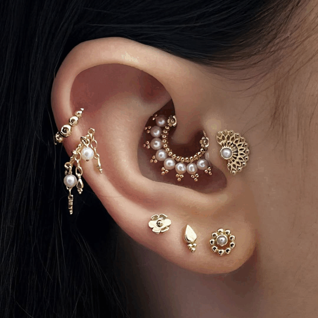 Du lobe à l’hélix, elle s’assume, accumule et mélange. Les bijoux d’oreille ne sont plus de simples accessoires : ils deviennent un véritable terrain d’expression, intime et personnel.